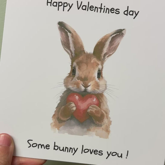Make someone smile this Valentine’s Day with this adorable bunny Valentine card featuring a sweet watercolour rabbit holding a heart and the playful message “Some bunny loves you!” Perfect for adding a touch of humour and a lot of love to your Valentine’s gift.